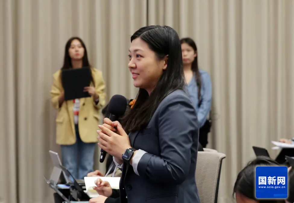 美国国际市场新闻社记者提问(赵一帆 摄)